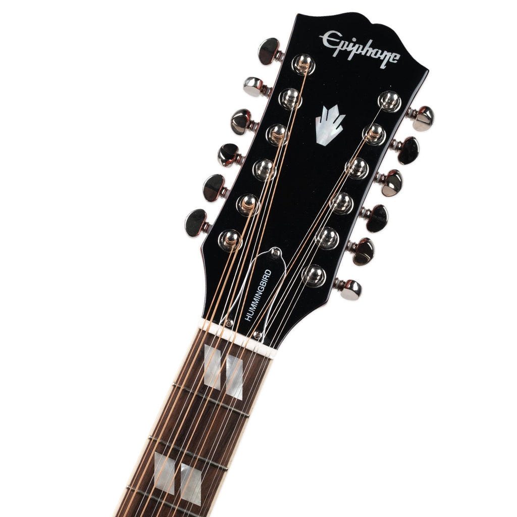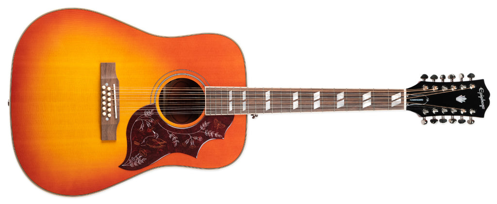 Inspired by the iconic Gibson™ Hummingbird acoustic, the Epiphone Inspired by Gibson™ Hummingbird™ 12-String produces a clear, bright tone with a beautifully balanced sonic range and comes equipped with a unique Hummingbird pickguard.