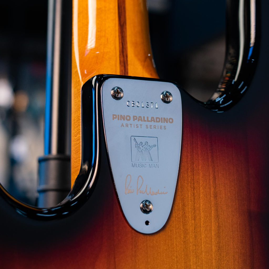 ERNIE BALL MUSIC MAN PINO PALLADINO SIGNATURE STINGRAY FRETLESS BASS - '79 BURST WITH MONO CASE
