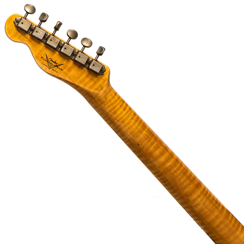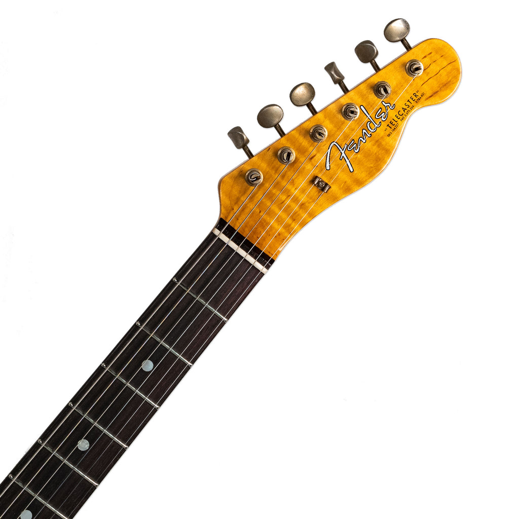 With its Ash body, flame maple neck and dark rosewood fretboard, the guitar is lively and vibrant. The speaks loud and clear even unplugged. The pickups are Handwound Loaded '51 Nocasters in each position. They add thickness and low end beef.