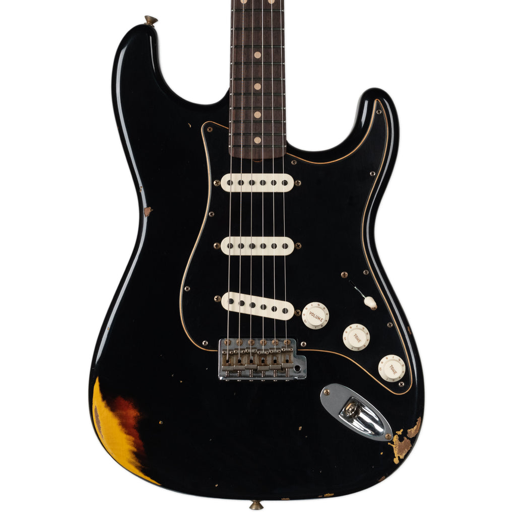 This one is Black OVER 3 Tone Sunburst, then tastefully relic'd down to expose the Sunburst.
