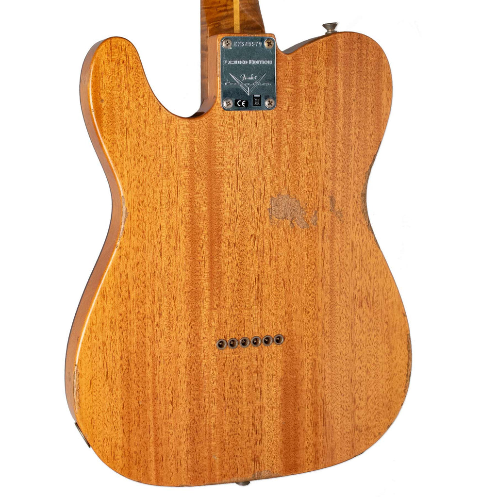With its ultralight Mahogany Thinline body, Roasted 3A Flame Maple neck, the guitar is lively and vibrant. The speaks loud and clear even unplugged. The pickups are Fender Custom Wound P90's. They add thickness and low end beef that make this one of the most versatile Tele's we've played.