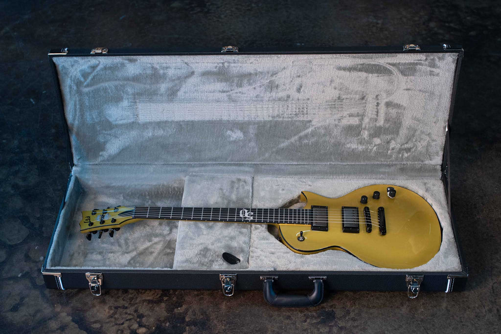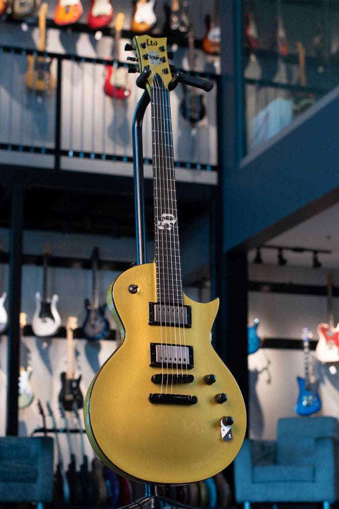To commemorate the 50th anniversary of ESP Guitars, ESP is proud to offer the limited-edition LTD EC-2025 50th Anniversary. Based on the single-cutaway EC shape, it's being offered in Metallic Gold finish with black hardware and black single-ply binding on the body, neck, and headstock, appropriate for ESP's golden anniversary celebration. It features a special "50" graphic fingerboard inlay at frets 11-13, as well as a 50th Anniversary logo on the guitar's headstock.