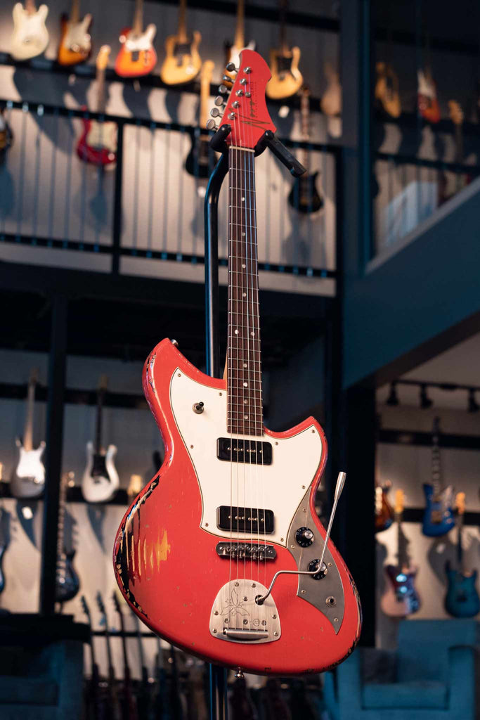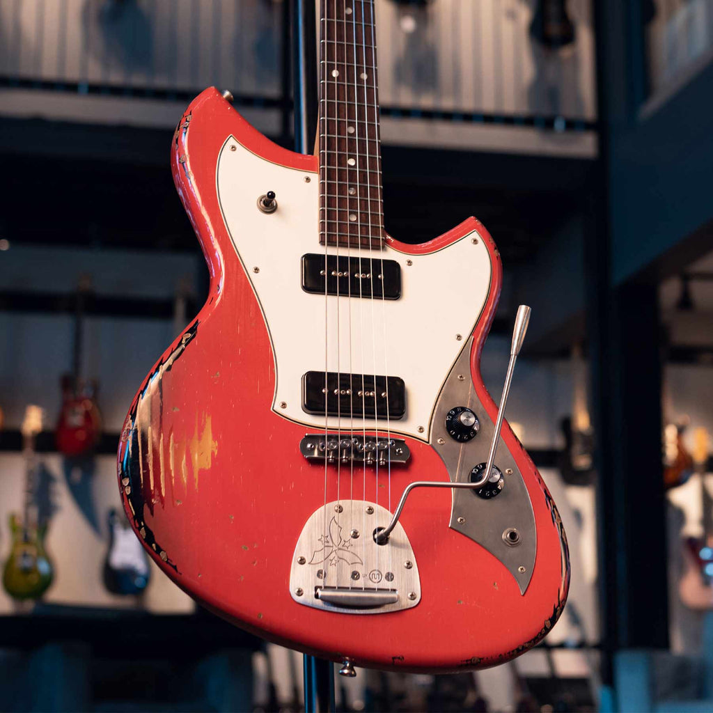 This LIMITED EDITION is in stunning FIESTA RED OVER '64 3 TONE BURST with Medium Distress