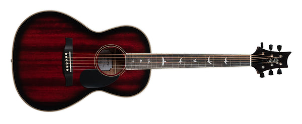 Available in five satin finishes with herringbone rosettes and accents, PRS SE Parlor acoustics look as good as they sound. Other high-quality features include a solid mahogany top, ebony fretboard and bridge, bone nut and saddle, as well as PRS trademark bird inlays and headstock design. PRS SE Parlor acoustics come with a gig bag and are strung with 12-53 strings.