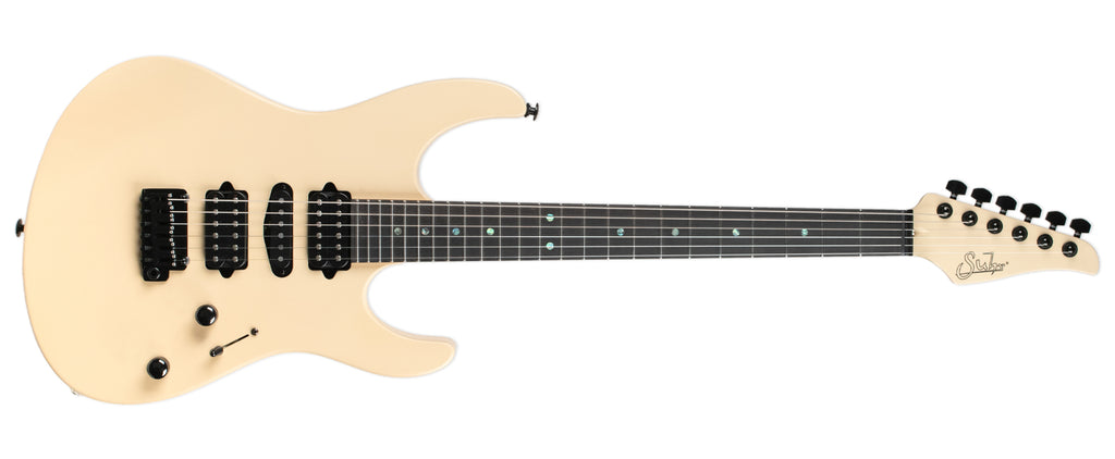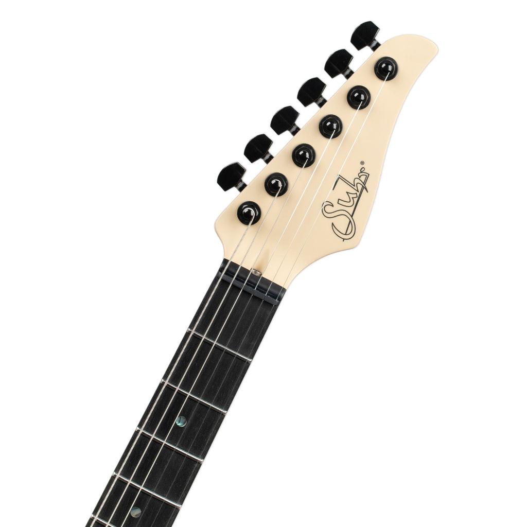 The incredibly balanced tone of a Basswood body matched with a plain maple ‘Even C Slim’ neck (.800"-.880") with an Ebony fingerboard. Jumbo Stainless Steel frets, with a Suhr DSV in the neck, Suhr V60 in the middle, and a Suhr DSH in the bridge.