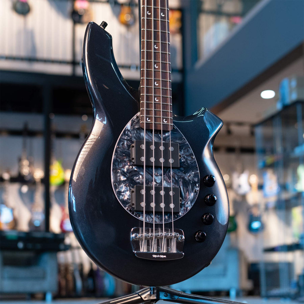 USED ERNIE BALL MUSIC MAN 2003 BONGO BASS SAPPHIRE BLACK 4-STRING W/CASE