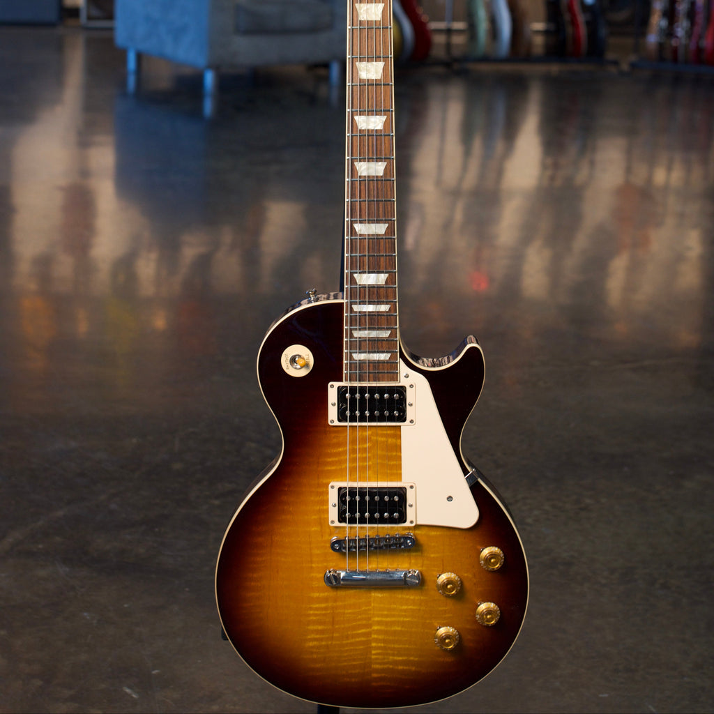Gibson and Slash are proud to present the Slash Collection Gibson Les Paul™ Standard. It represents influential Gibson guitars Slash has used during his career, inspiring multiple generations of players around the world. The Slash Collection of Gibson guitars can be seen live on stage with Slash today. Each Slash Collection Gibson Les Paul Standard features a AAA flamed maple top, a solid mahogany body, and Slash's personal touches including a 50s neck profile, Gibson Custom BurstBucker™ Alnico 2 pickups, color-coordinated hardware appointments, hand-wired electronics with Orange Drop® capacitors, and a vintage-style brown hardshell case.