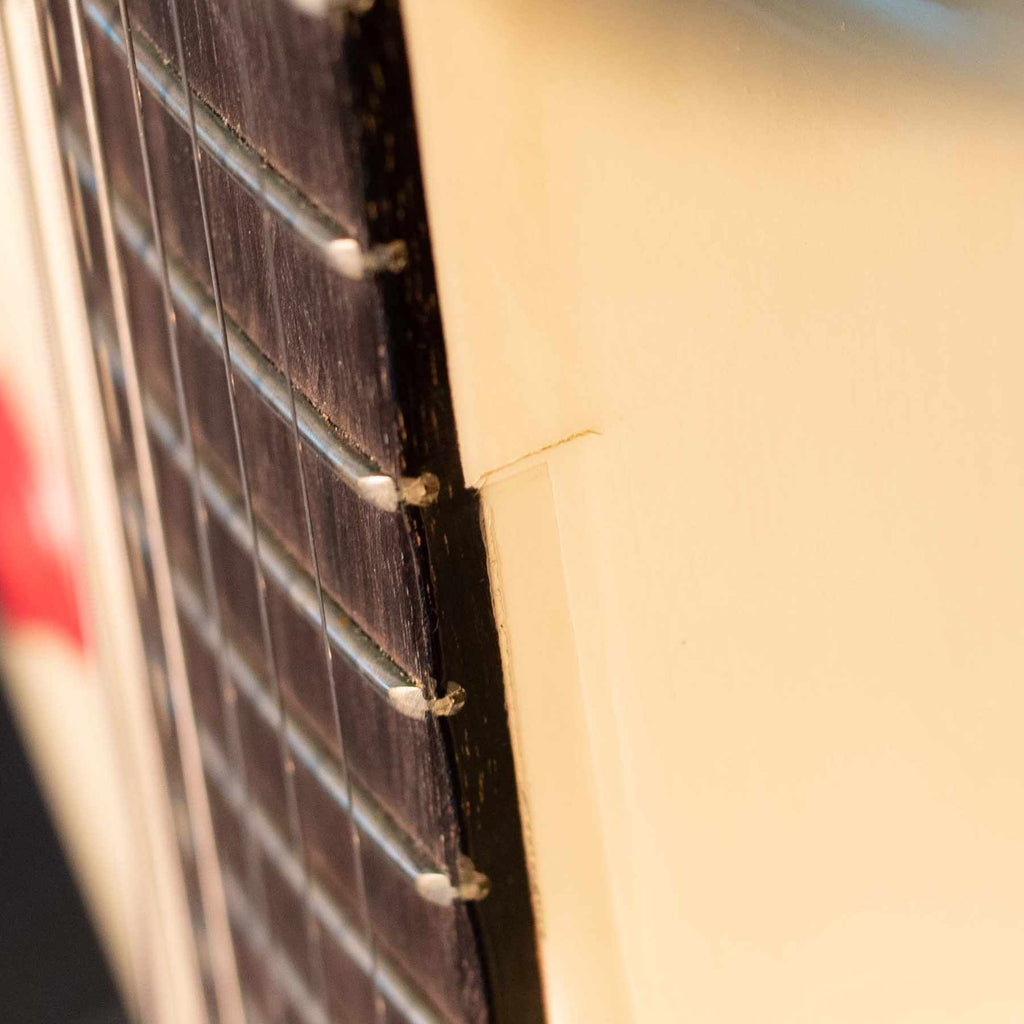 This instrument is in very good condition with some light play wear and nicks in the headstock as shown.