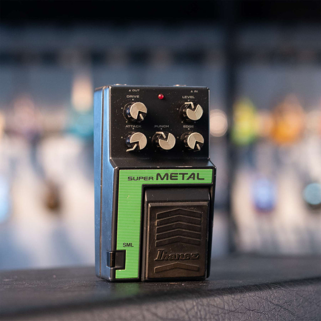 The Super Metal SML was part of Ibanez's "Legend" series which was built with a sharper-dimensioned housing unit. The Super Metal features controls for attack, punch, volume and tone.
